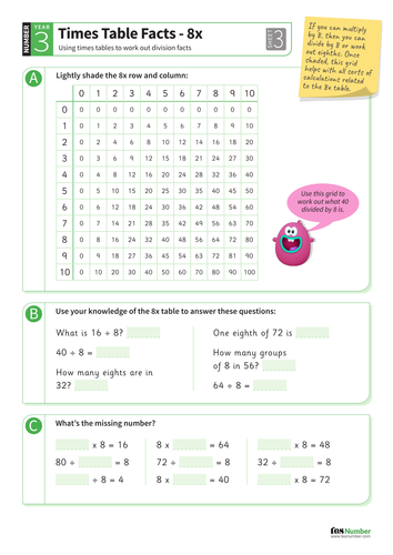 8 Times Tables Division Facts Worksheet Ks2 Number Teaching Resources